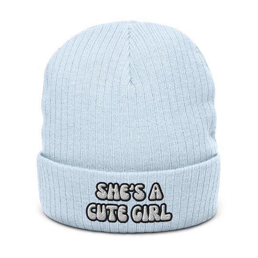 “She’s A Cute Girl” Ribbed Knit Beanie